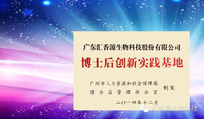 近日,广州市人力资源和社会保障局下发了《关于公布第三批广州市博士后创新实践基地的通知》,公布了广州市第三批博士后创新实践基地名单,广东汇香源生物科技股份有限公司位列其中。